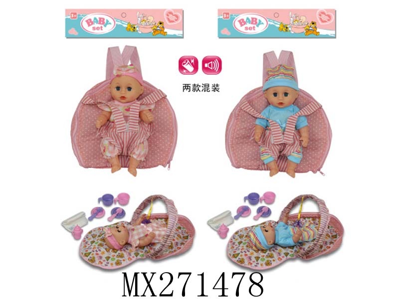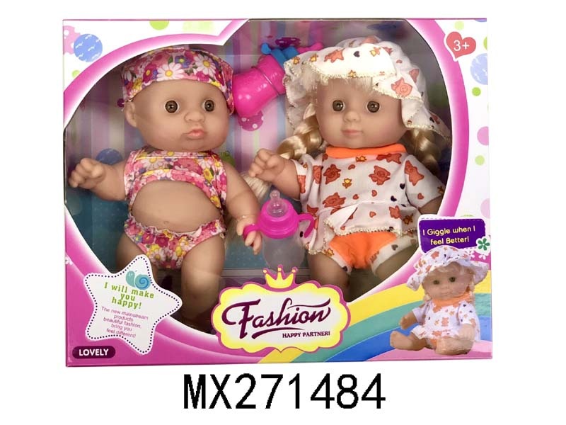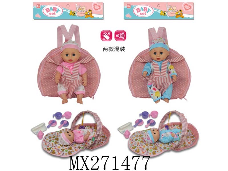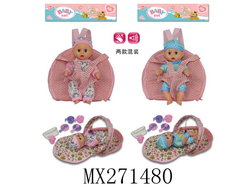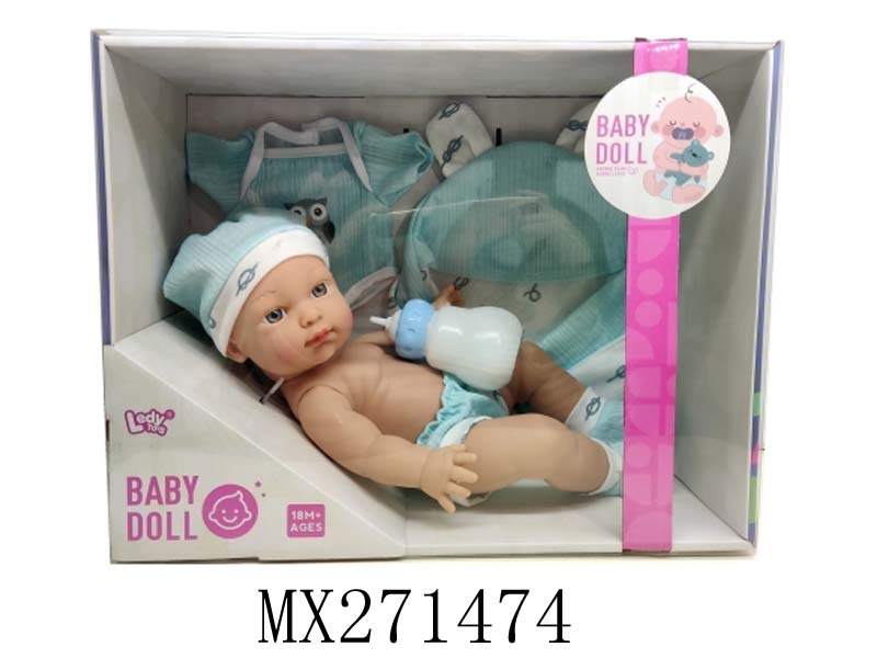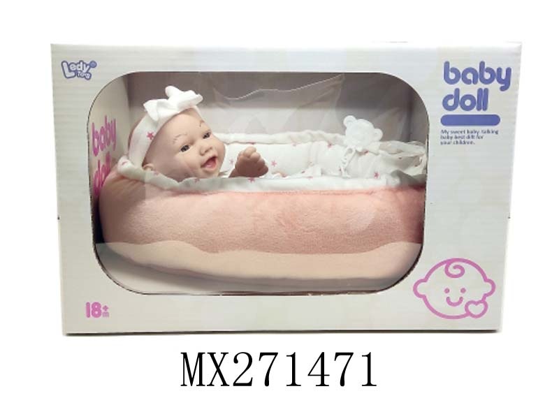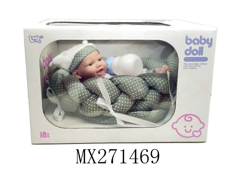 10寸全搪胶笑脸娃娃+睡篮+奶瓶