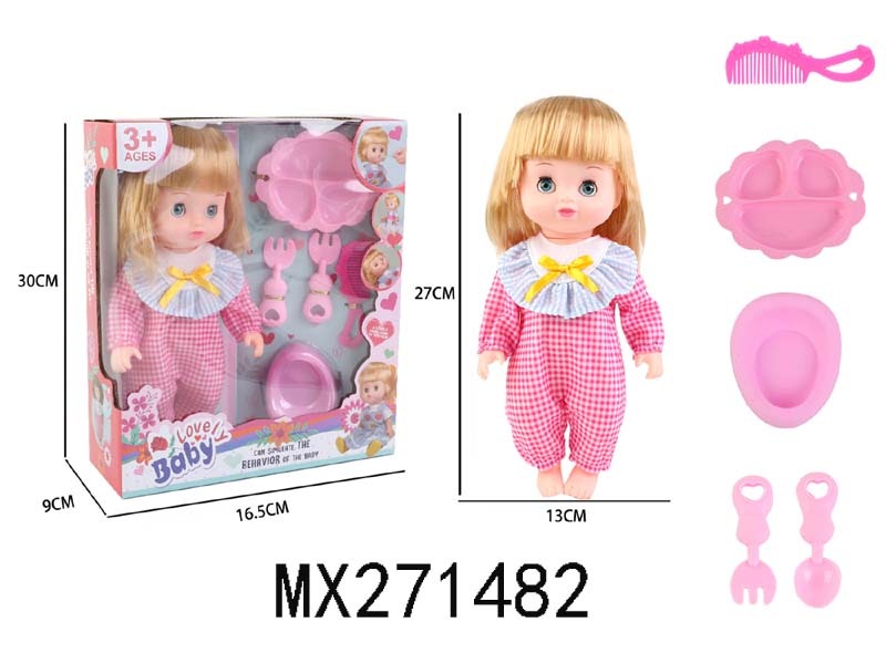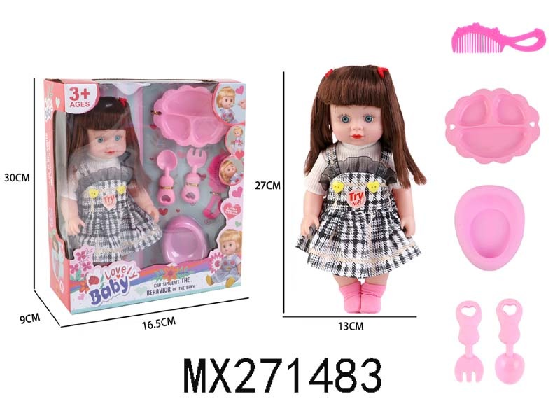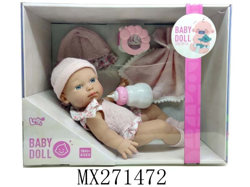 12寸全搪胶娃娃+配帽+方巾+奶瓶+毛毛虫摇铃