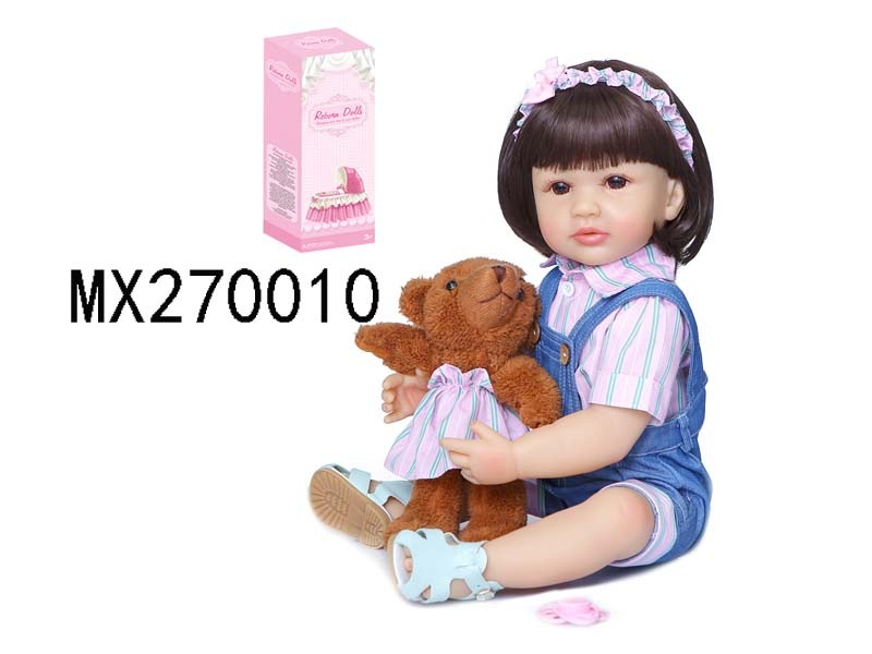 55厘米重生娃娃高仿真婴儿娃娃,(假发套)全身软胶,带奶瓶,磁性奶嘴,尿布,出生卡,凉鞋,小熊