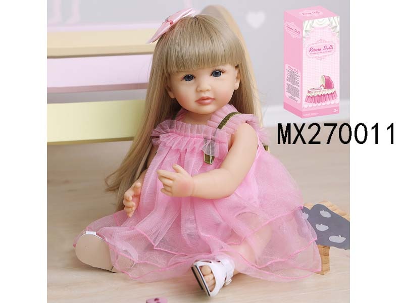 55厘米重生娃娃高仿真婴儿娃娃,(假发套)全身软胶,带奶瓶,磁性奶嘴,尿布,出生卡,运动鞋,金棕发蓝眼