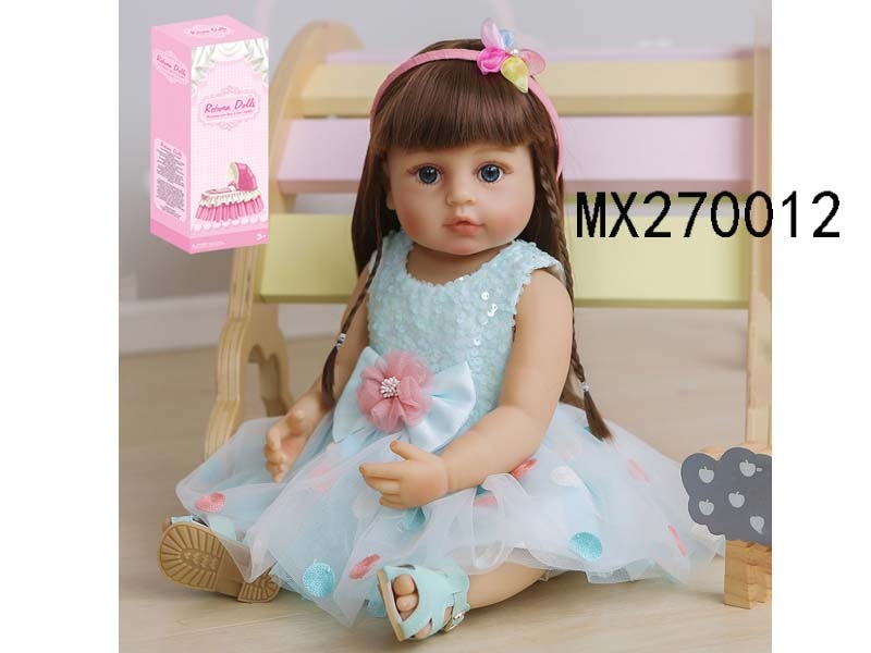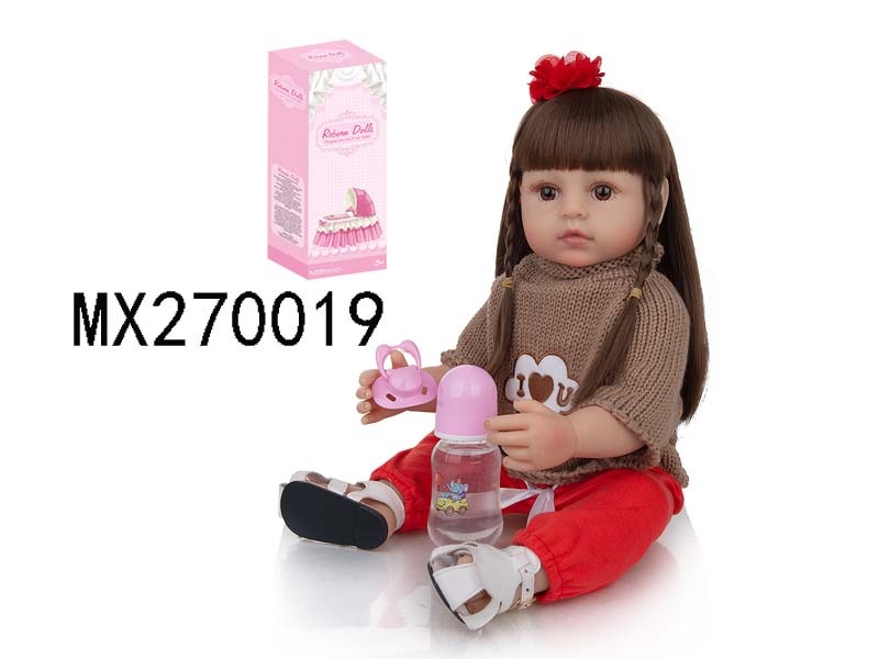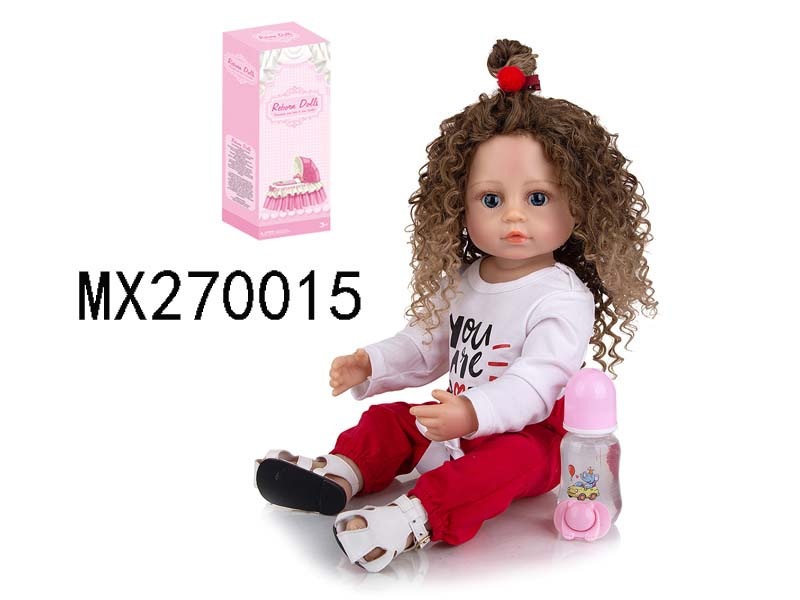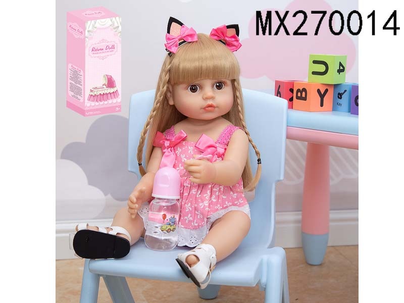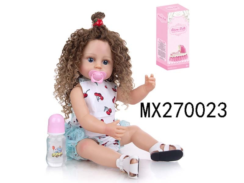 55厘米重生娃娃高仿真婴儿娃娃,(假发套)全身软胶,带奶瓶,磁性奶嘴,尿布,出生卡,凉鞋,