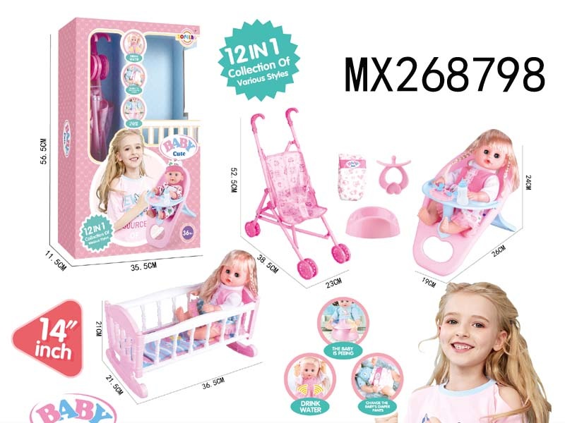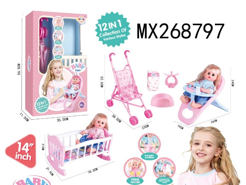14寸活眼娃娃公仔12合1套装6声IC 包电