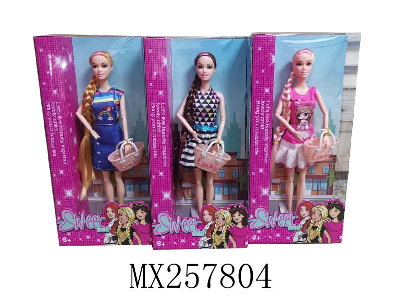 11.5寸九关节长发辫子时尚芭比娃娃 带手提包/3款混装
