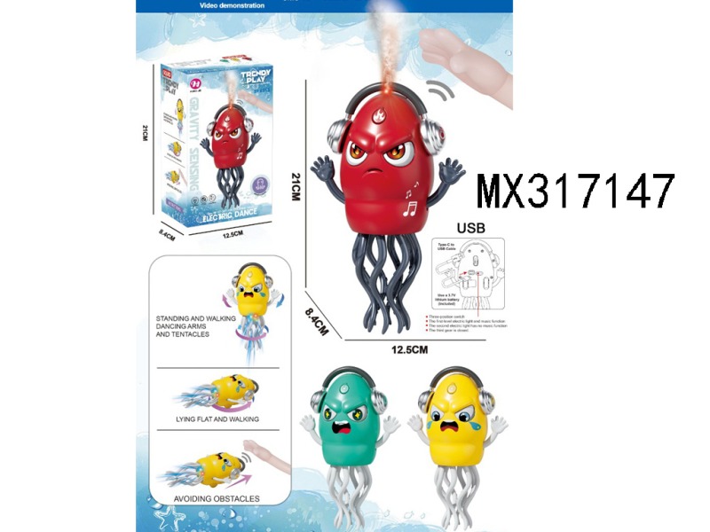 卡通电动感应避障跳舞章鱼(充电版)3色