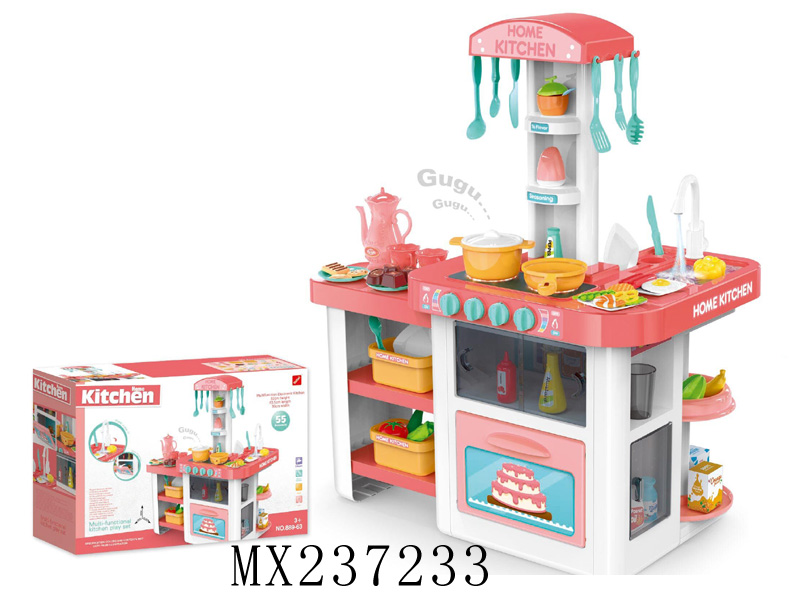 93.5cm喷雾厨房(带喷雾,蒸蛋器,灯光音乐,出水功能)65PCS,不包电
