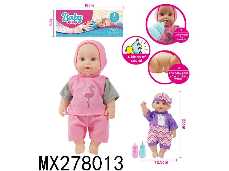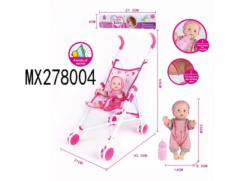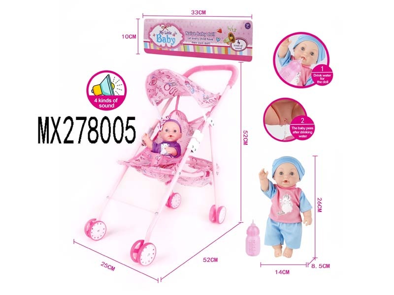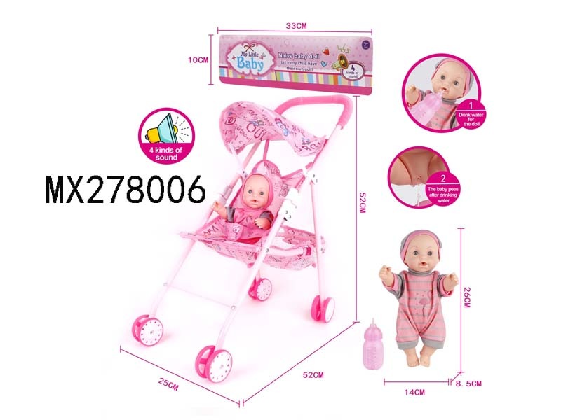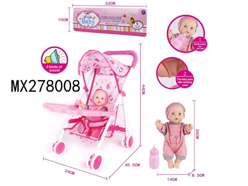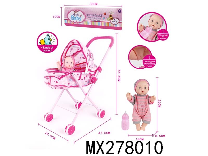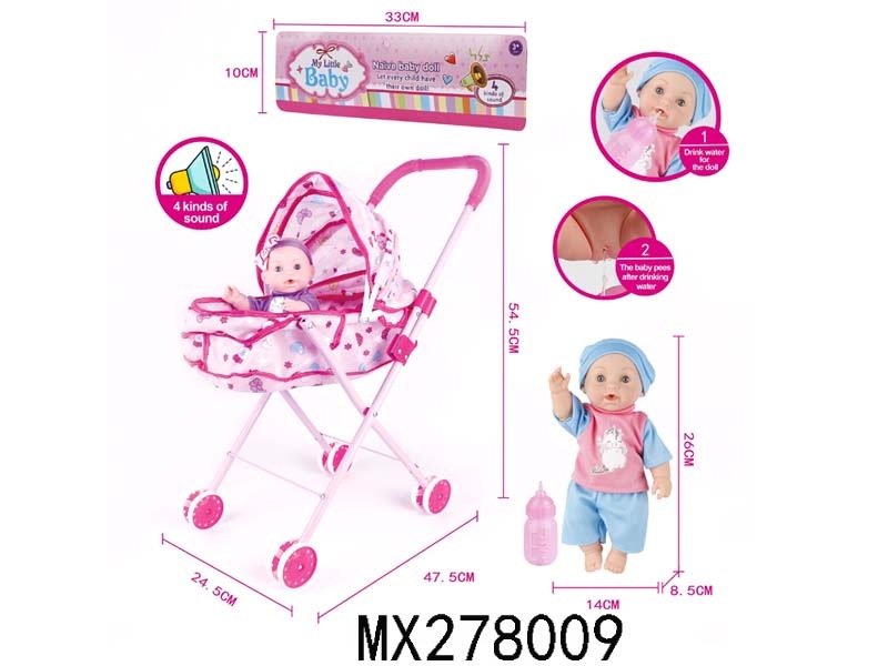 26cm full enamel male baby drinking water, urinating, iron trolley with IC bag