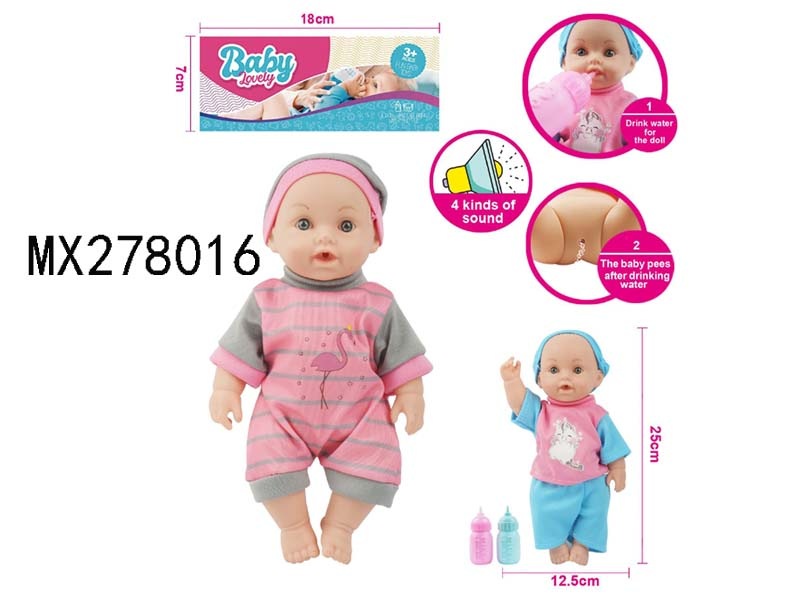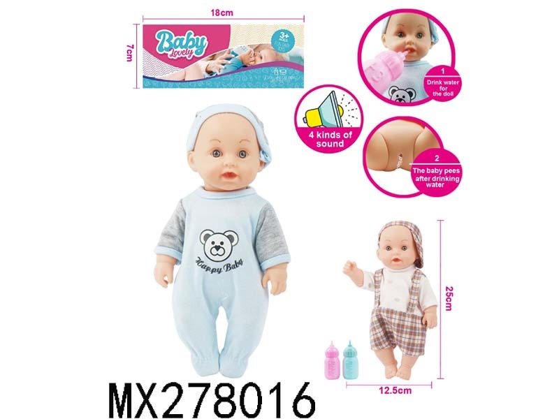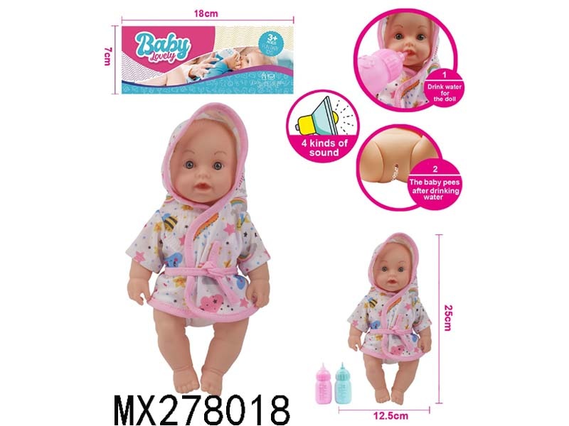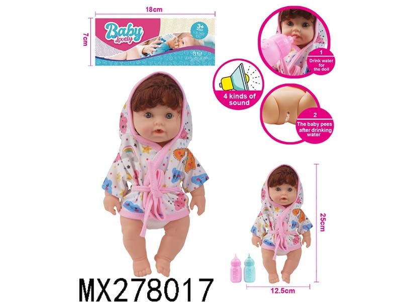 26cm full enamel male baby drinking water and urinating with IC bag