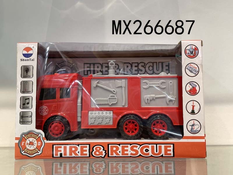 Four button light music water spray inertia fire truck