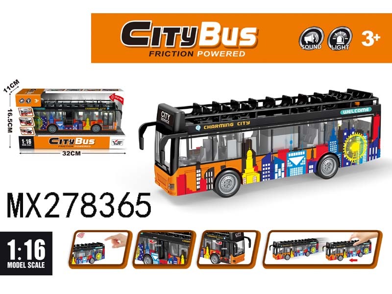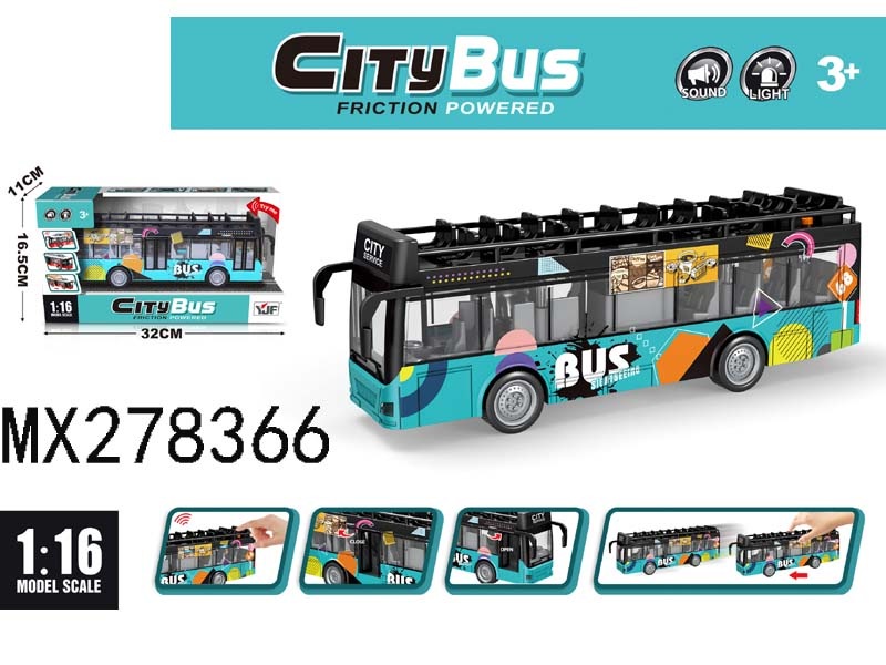 1:16 double-deck city tram sightseeing bus (UV printing color pattern) with light and sound