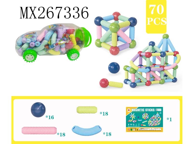 Magnetic rod + magnetic car 70pcs