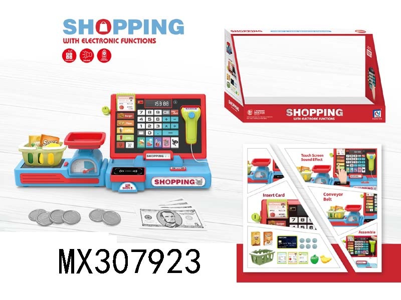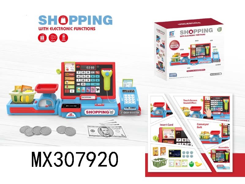 Big red cash register+electric conveyor belt+POS machine (with calculator function)